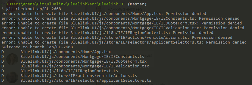 无论何时我执行任何Git命令(stash、pull、checkout.)这要求Git编写一个文件,如果该文件是打开的,则Git将只需删除该文件。一直都是。我在GitHub工作了多年,但这从未发生过。现在我正在做一个远程私人GitLab回购。不确定这是否相关,但这个bug绝对令人恼火。