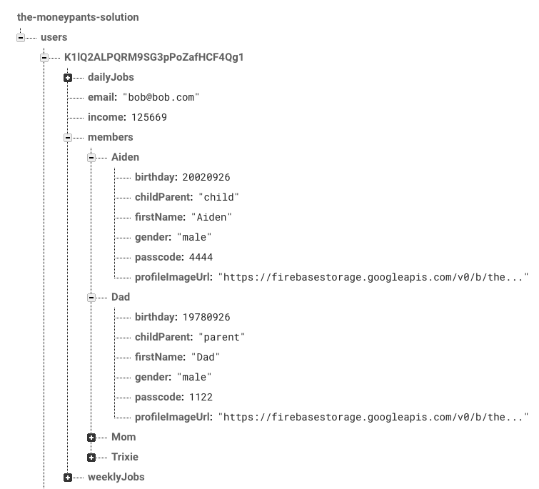 我希望在我的用户列表中找到最年轻的用户,并加载他们的数据:姓名、个人资料和当前的工作分配。我读过Firebase关于查询数据的入门文章,但它们的示例对我来说并不适用,因为我的数据的组织方式不同。我有一个额外的子层。
