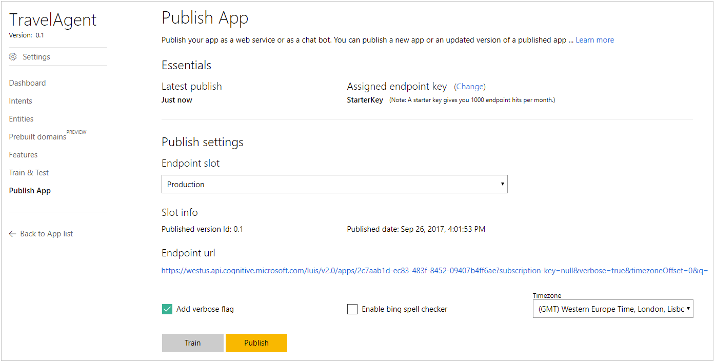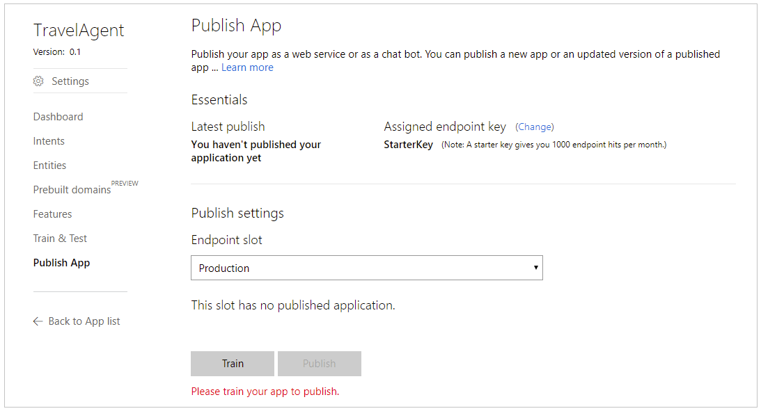 如何将LUIS APP发布为Azure上的web服务。大多数教程和帮助在线展示了老路易斯网站(luis.ai)上的步骤。