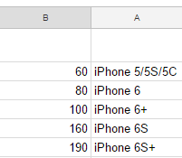 我有两张表:一张计算支出后的收入,另一张持有收入表希望用数据计算的部分的成本。我需要的收入表,以填补一个项目的价格,根据与相邻的单词与另一张表匹配。例如: