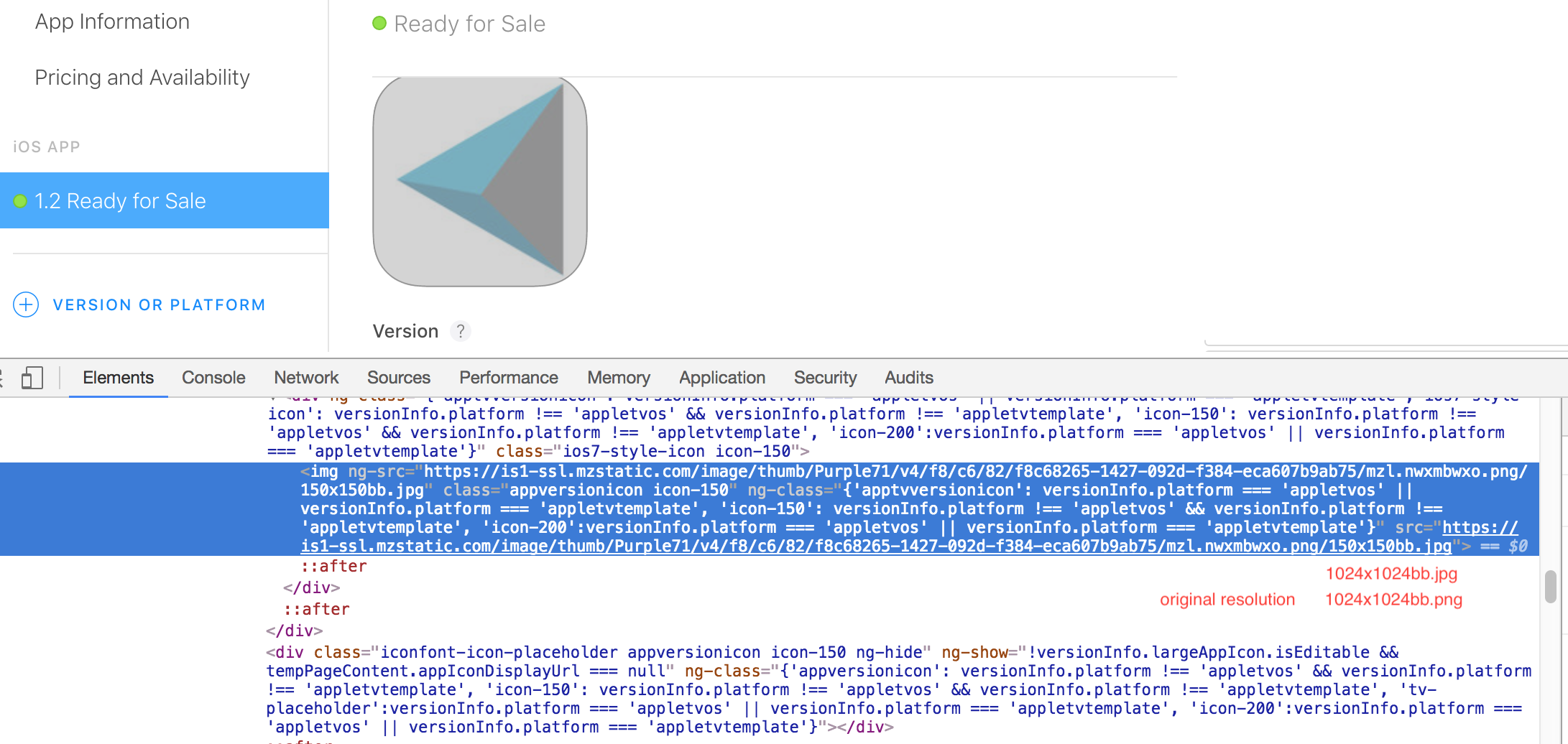 我可以从我的iTunesConnect帐户门户下载1024x1024应用商店图标吗?
