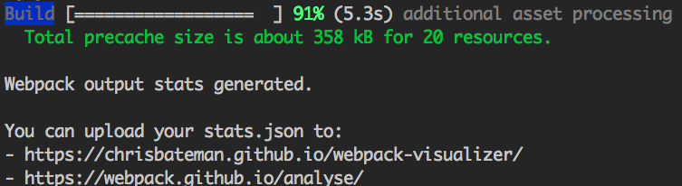 我是新来的预演和反应。每当我使用'preact build‘构建preact pwa时,根据输出,生成永远不会达到100%。它只上升到91%,但是从构建代码来看,构建似乎是100%完成的(我已经部署了构建,它正在工作)。有人能给这个放个灯吗?