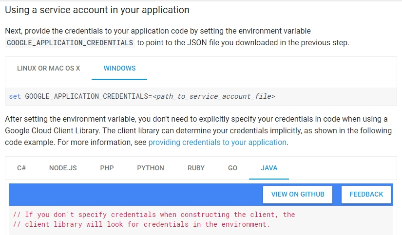 有一个指南https://cloud.google.com/docs/authentication/getting-started#auth-cloud-implicit-java的链接