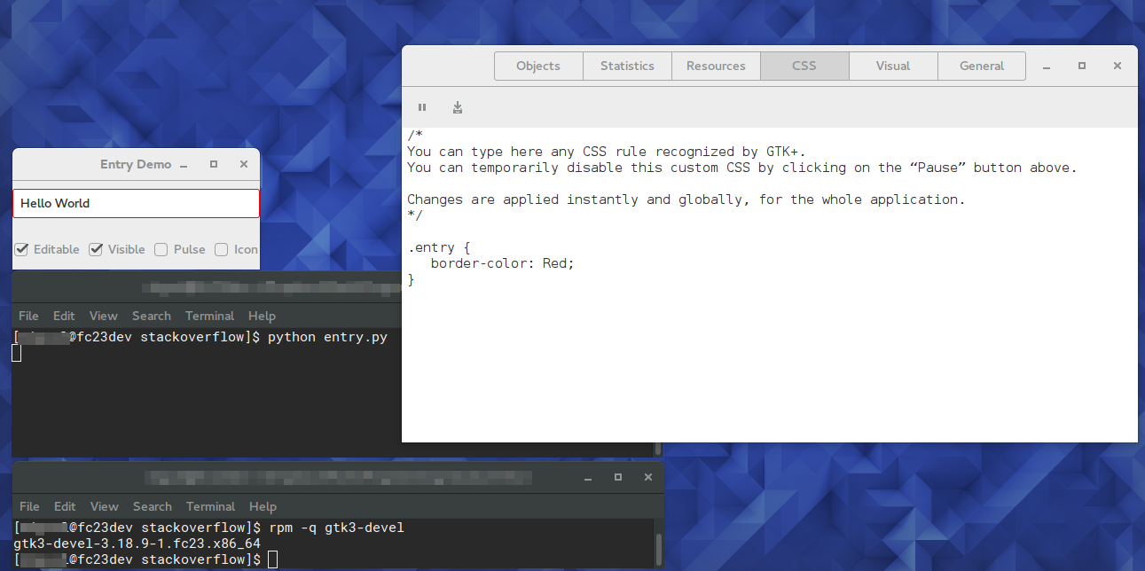 我有一个Gtk.Entry,每当用户输入无效值时,我希望将其边框更改为红色。我正在使用Gtk+3和Python3。对此有什么意见吗?我已经看到"Gtk.Entry.set_inner_border()“对于gtk+ > 3.4是不可取的。