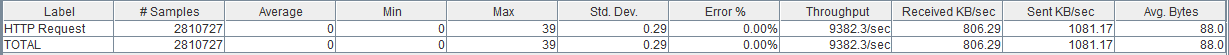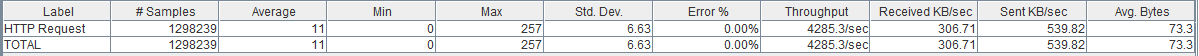 具有50个客户端线程并发轰击请求(始终为每秒4285个)的Jmeter: