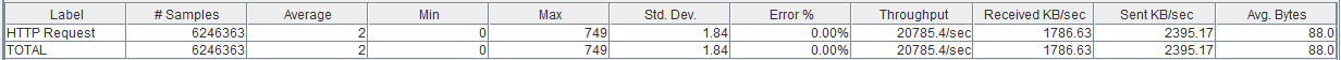 具有50个客户机线程的Jmeter并发地轰炸请求(贯穿始终:每秒20785):