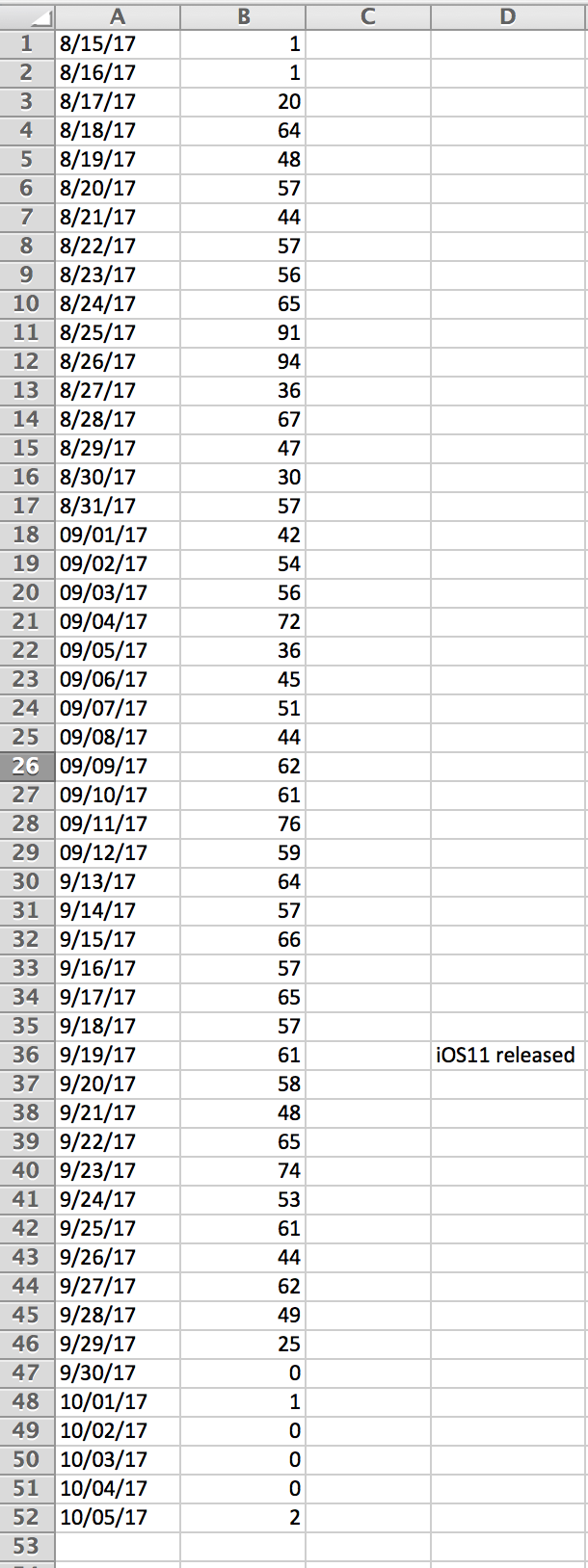 9月,我们注意到应用程序下载中出现了一个突然的高峰,因为一个旧的iOS6应用程序正试图扼杀它。