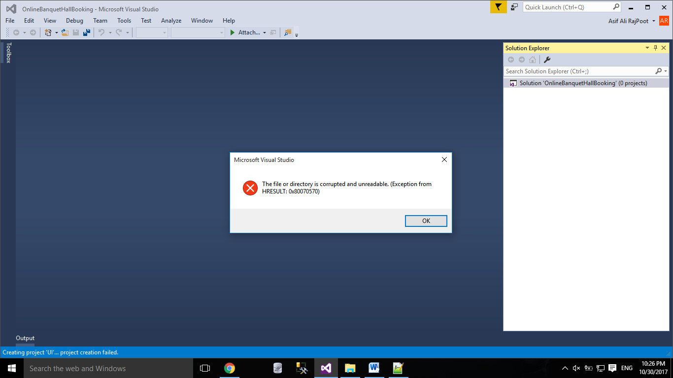 D:\UOSGC\Final\Banquet_Events_System\UI\UI.csproj: 错误:无法加载文件或程序集“Microsoft.VisualStudio.Web、Version=14.0.0.0、Culture=neutral、PublicKeyToken=b03f5f7f11d50a3a”或其依赖项之一。文件或目录已损坏且不可读。(HRESULT例外: 0x80070570)