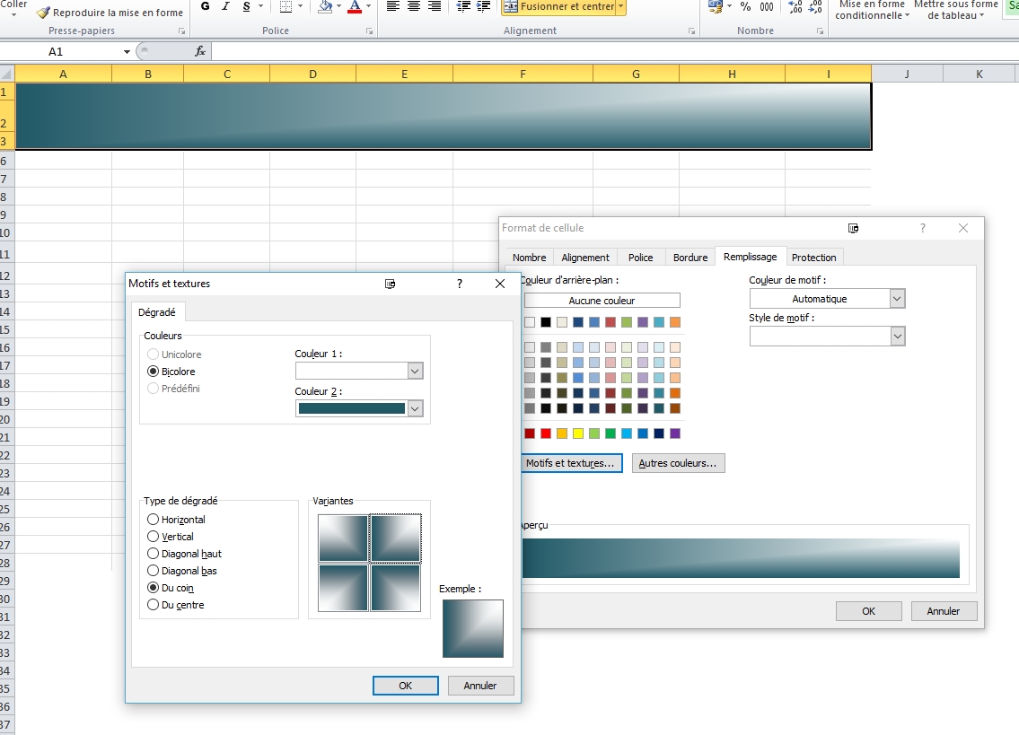 尝试使用记录宏获取所需的内容,然后播放并查看它是如何工作的,但如果失败,则可以使用此引用VBA代码单元格填充(颜色、模式和梯度)手动编辑。