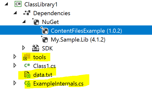 根据下面的https://blog.nuget.org/20160126/nuget-contentFiles-demystified.html,这看起来是在"contentFiles“目录下支持的。