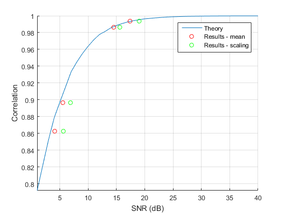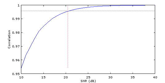 如果相关值为0.9958,则会产生20.79dB的信噪比,这与您的结果是一致的。