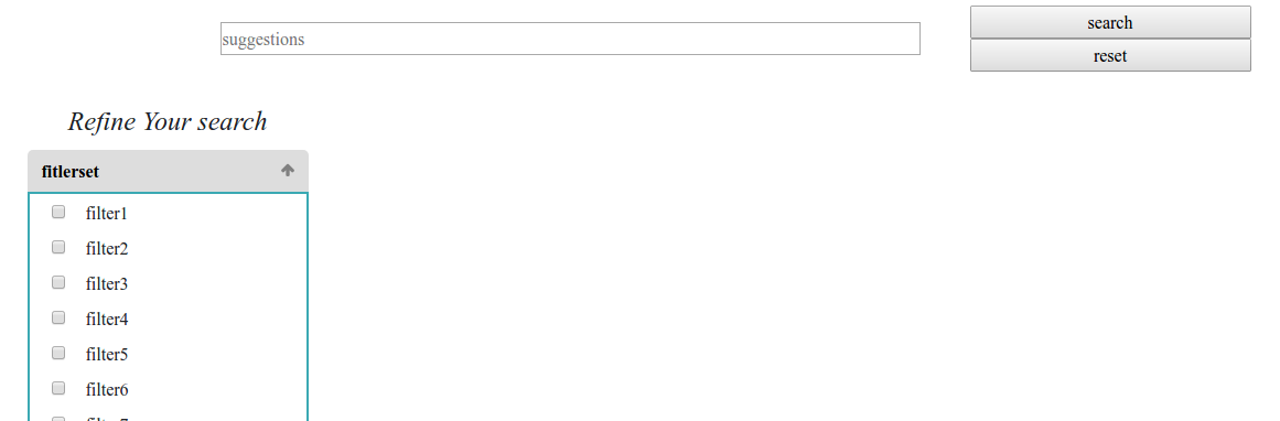 我使用Node.js作为后端,JQuery作为前端,我有一个带有过滤器的搜索框作为复选框,下面是下一张图片。