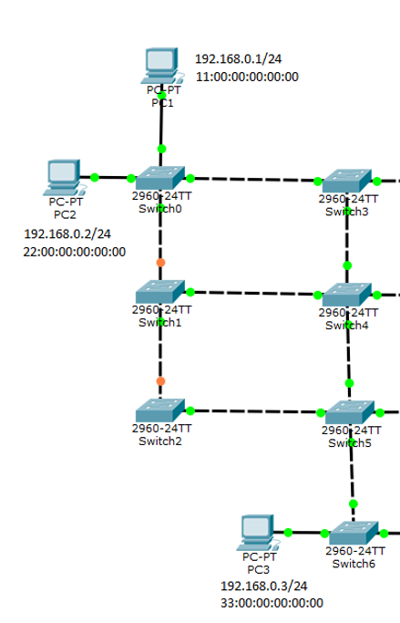 11:00:00:00:00:00 traceroute mac 33:00:00:00:00:00但它不起作用。"Normal“traceroute (h1 traceroute h2)正在工作(只有目标地址在输出中)。但我需要找出平的路。