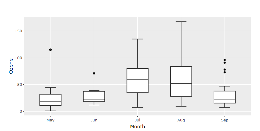 gg <- ggplot(airquality, aes(x=Month, y=Ozone, ids=.id)) + geom_boxplot()