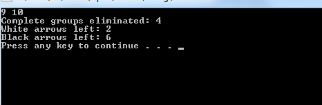 如果给出白色箭头(Ka)和黑色箭头(Kb)的数量,我必须说明射手杀死了多少组,以及每种类型的箭头有多少只剩下。
