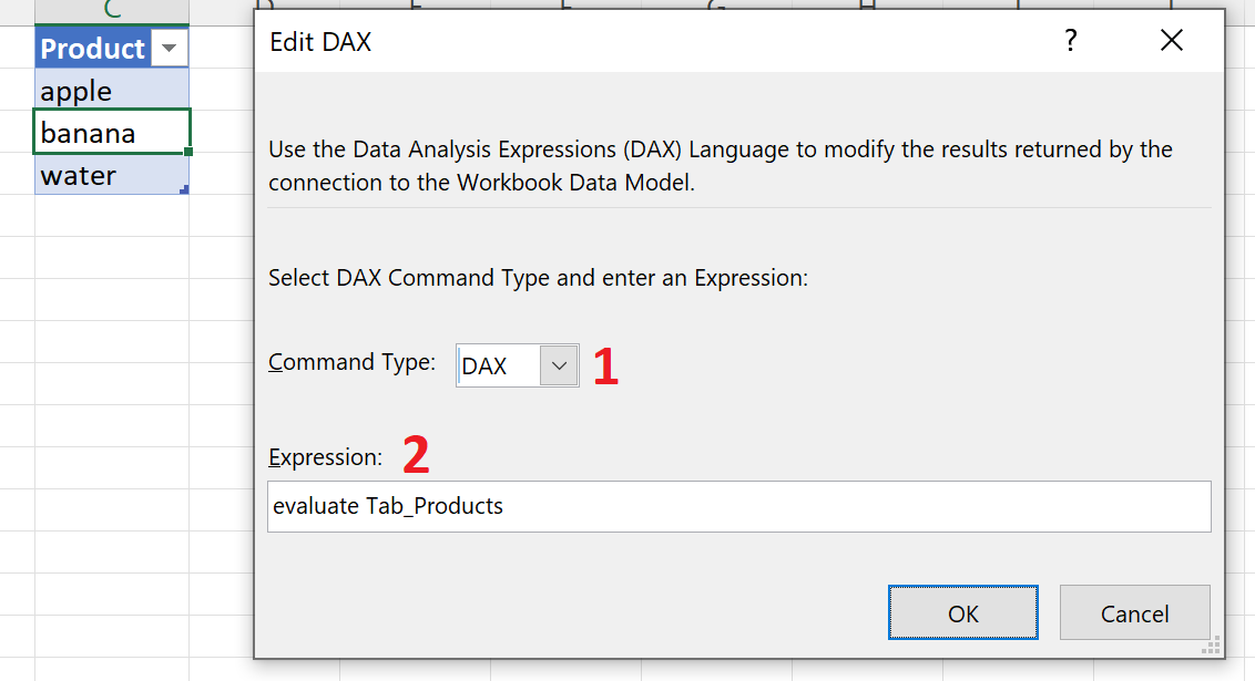 将此新的DAX形状表从Excel工作表添加到数据模型中。