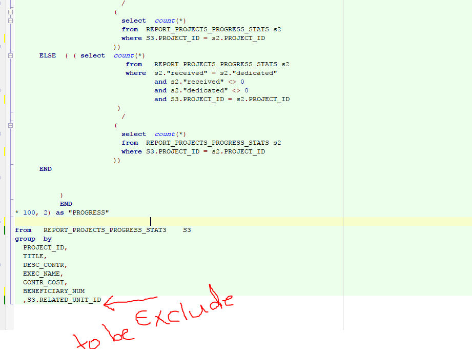 我想从group by语句中排除一个列,因为它会导致一些冗余记录。有什么建议吗?