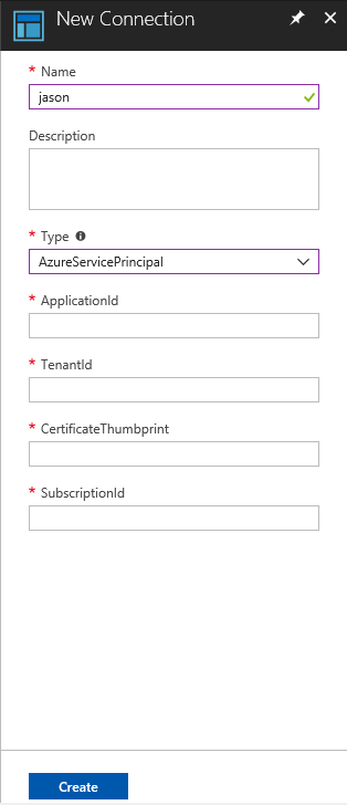 例如,我们可以新建一个连接,类型为Azure service principal。