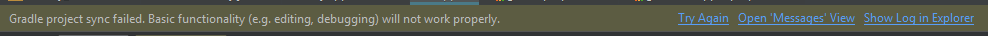 Gradle项目同步失败。基本功能(例如编辑、调试)不能正常工作。