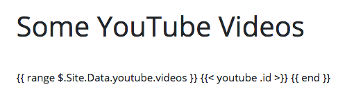 雨果有一个YouTube短码。我希望与数据模板一起使用它来显示由JSON文件内容驱动的视频列表。