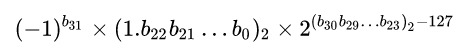 因此,对于32位值,等效的整数是e * L + m.因为指数是从(第23位)开始的,第一部分是m.假设指数用-127存储,则将表达式转换为(e + B)*L + m。
