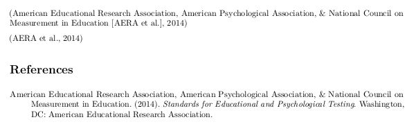 author = {{American Educational Research Association} and {American Psychological Association} and {National Council on Measurement in Education}},