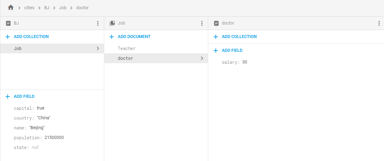 然后,您可以首先通过作业查询此集合,然后按薪资排序(您需要为此创建一个索引),然后对于每一行,您可以通过ID查询City集合,以获取城市详细信息。