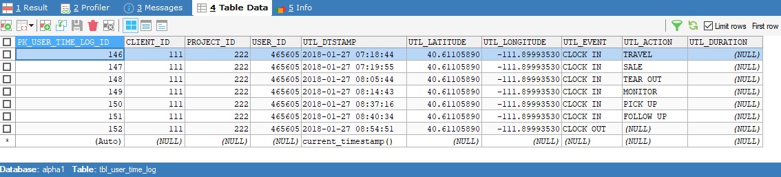 AND A.UTL_EVENT <> 'CLOCK OUT'