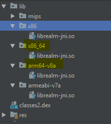 如果您的应用程序只使用用Java编程语言或Kotlin编写的代码,包括任何库或SDKs,那么您的应用程序已经为64位设备做好了准备。如果您的应用程序使用任何本地代码,或者您不确定它是否使用,您将需要评估您的应用程序并采取行动。 ..。 检查64位库的最简单方法是检查APK文件的结构。当构建APK时,APK将与应用程序所需的任何本地库一起打包。本机库基于ABI存储在各种文件夹中。它不需要支持每一个64位架构,但是对于您支持的每个本地32位架构,您必须包括相应的64位架构。 对于ARM架构,32位库位于armeabi-v7a中。64位等价物是arm64-v8a。 对于x86体系结构,查找32位的x86和64位的x86_64。 首先要做的是确保在这两个文件夹中都有本机库.