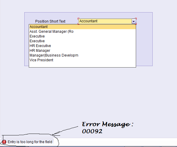 错误“输入对于字段太长”并不是与列表框字段具体相关的,但可能发生在所有类型的屏幕字段中,因此我将首先回答一般情况,然后解释您为什么出错。