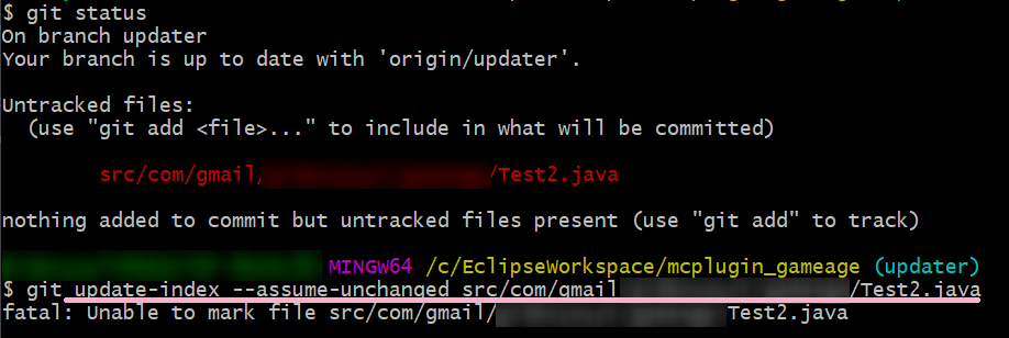在进行我的研究时,我尝试过git update-index --assume-unchanged,但是它给了我以下错误。