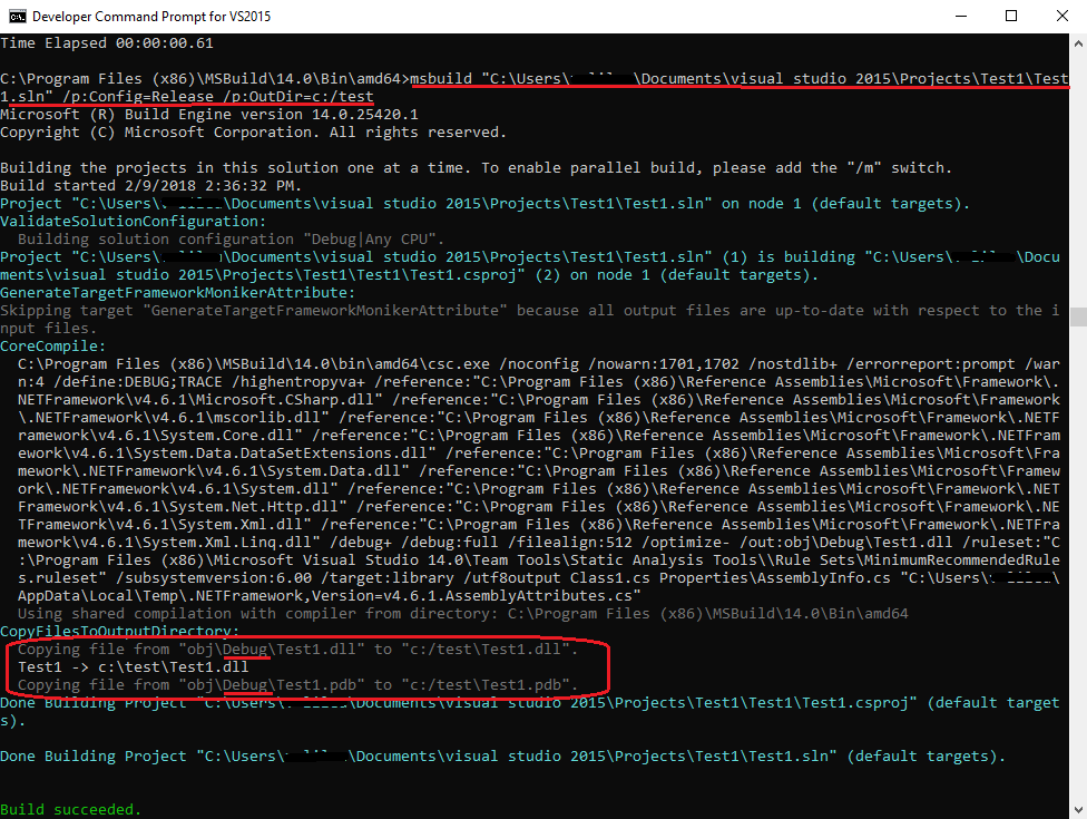 此命令使用50+ min执行: C:\Program (x86)\MSBuild\14.0\Bin\amd64>MSBUILD C:\xyz.sln C:\xyz.sln /p:OutDir=c:/test