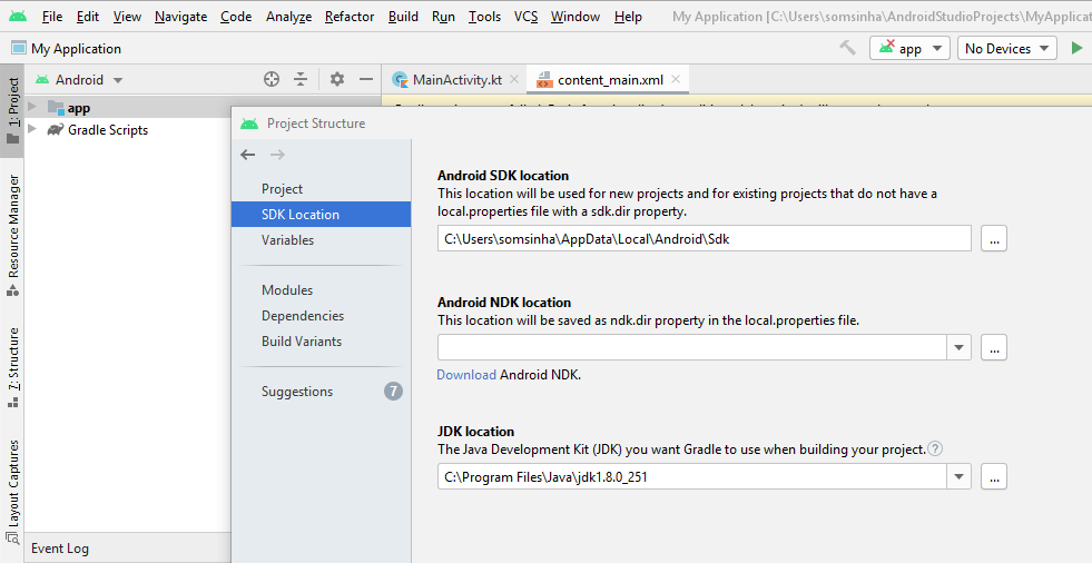 确保在Android中选择的JDK位置与环境变量中的JDK设置相同。