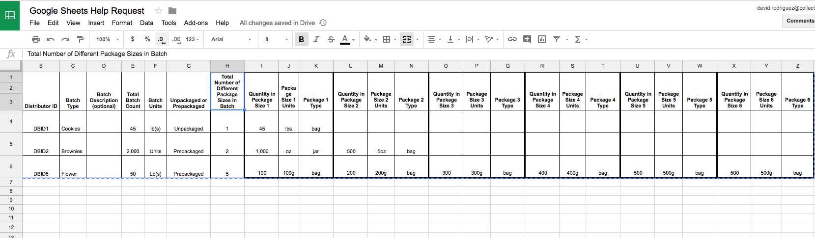 如果一个批处理的值在H列(包大小的数目)大于1,那么我们希望取消与包大小的数量相关的列组。