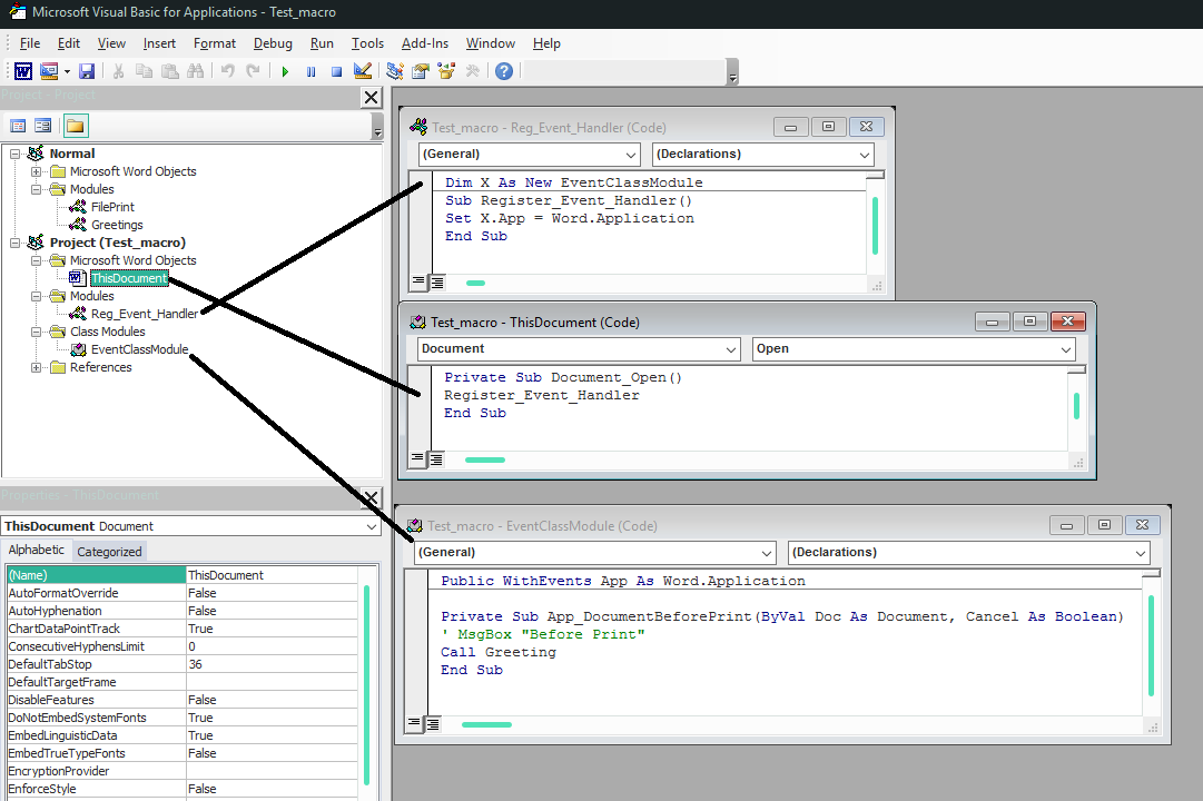 Private Sub App_DocumentBeforePrint(ByVal Doc As Document, Cancel As Boolean)