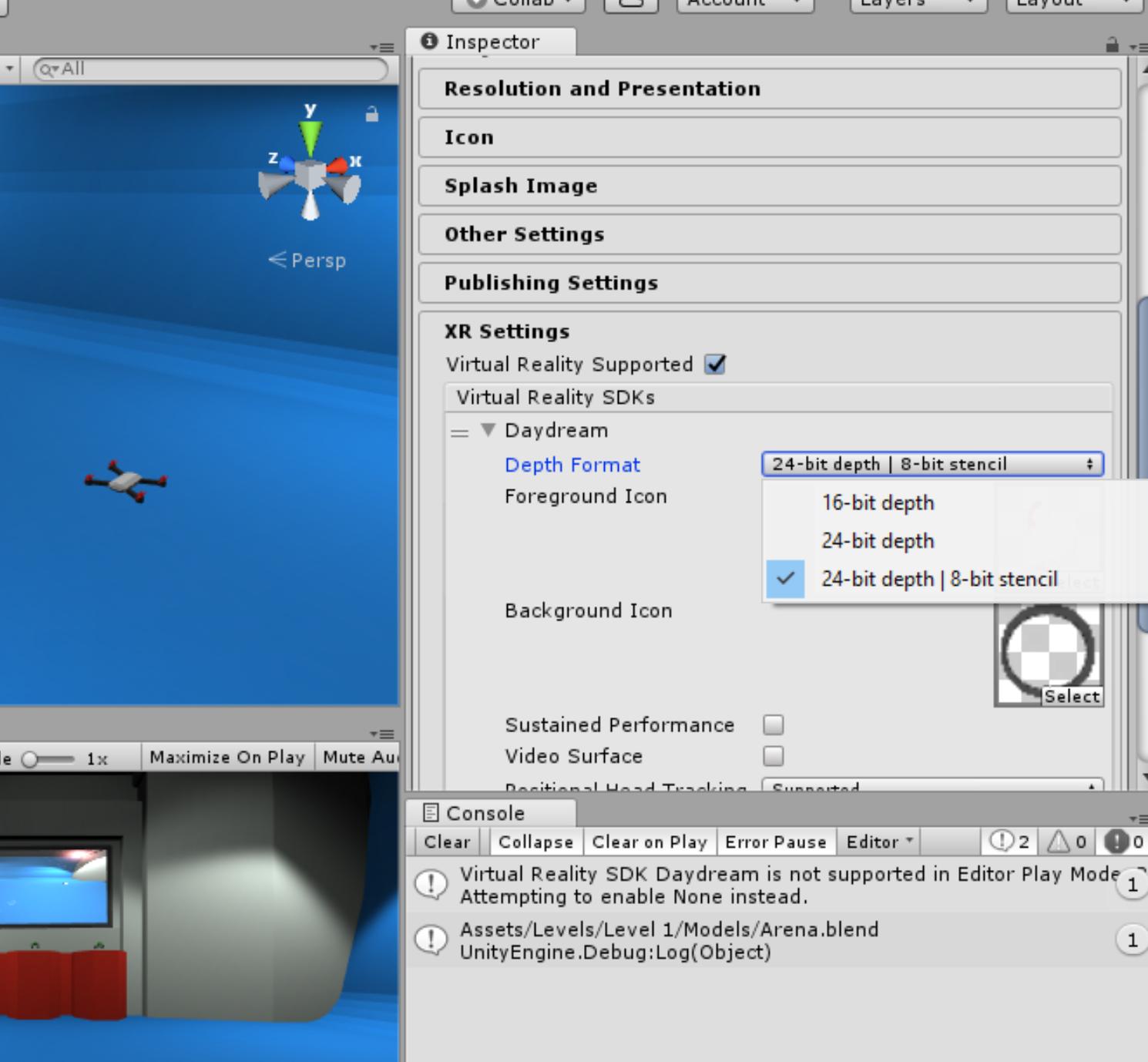 附注:我上传了一个统一包(包括一个立方体模型),你可以使用你的白日梦手机来查看它。我没有写任何代码,只是完成了基本的GVR设置和启用反混叠,但锯齿问题仍然存在。你可以在下面的链接中找到它。谢谢。