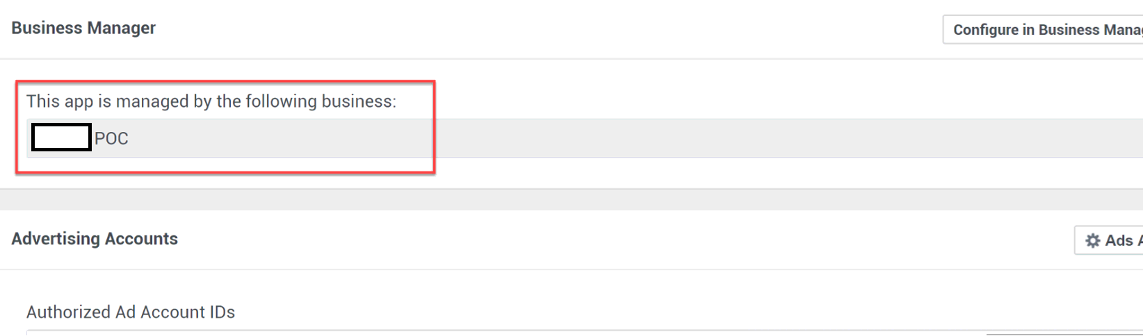 上面说,“你和一个测试用户登录到Facebook。广告管理器没有这种访问权限,为了在你的个人Facebook账户中使用Business登录”,我尝试了与真正的用户取得business_manager的许可,并取得了成功。