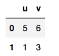 df2 = pd.DataFrame([[5, 6], [1, 3]], columns=['u', 'v'])如何在熊猫身上做到这一点?在SQL中怎么样?