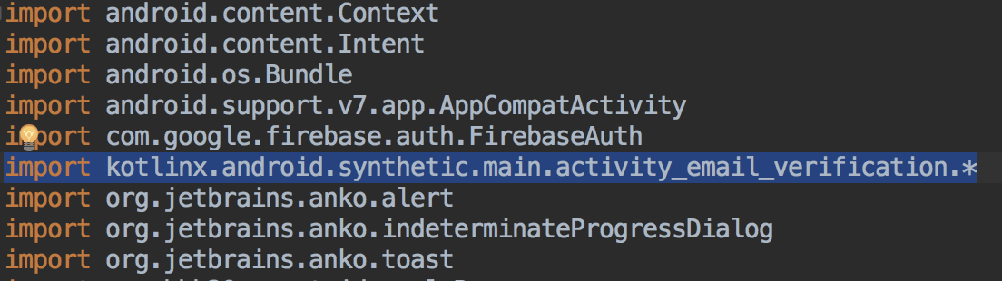 Android应该自动导入它,或者给你一个提示。如果还没有,请检查IDE的Kotlin版本是否与您的项目匹配(在gradle中),并重新启动IDE。