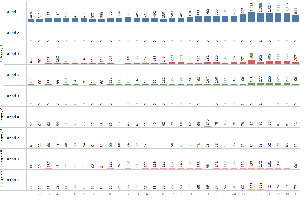 维度包括:类别、品牌、数据