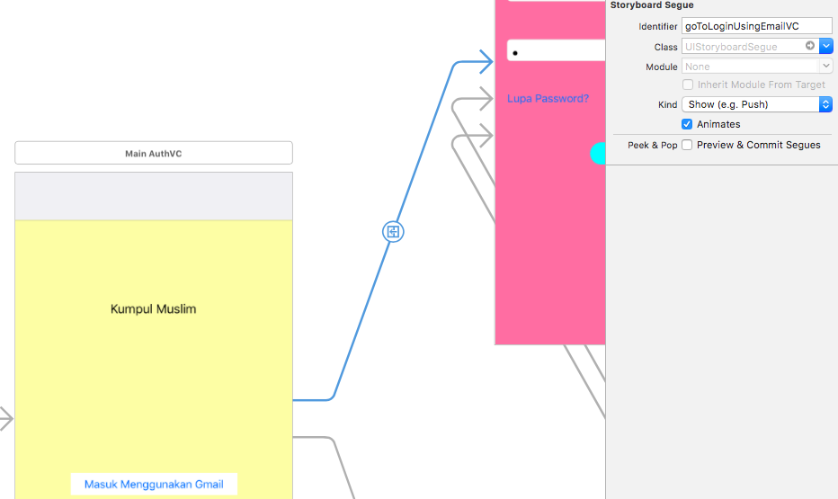 我不知道这是否有效,但上面的第一张图片实际上是我的认证故事板。我试图在“身份验证故事板”中分离身份验证过程。主要的故事情节如下: