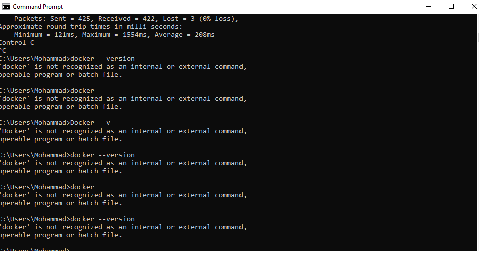 'docker' is not recognized as an internal or external command,