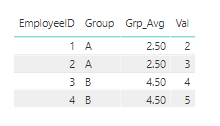 我的思想过程是,Group_AVG平均每个组所有员工的avg,但是,由于我需要特定员工的结果,一旦我介绍了该列,它就开始被员工切片,而组avg变得不准确。我想我需要在做任何员工filtering..how之前生成集团Avgs?