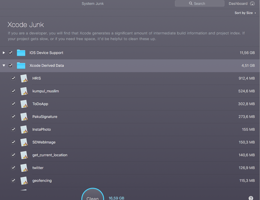 我搞糊涂了。然后我下载了一个名为cleanMyMac3的应用程序。我发现我的Xcode派生数据和ios设备支持占用了大量内存。