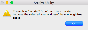然后从我的应用程序中删除我的Xcode。我试着从苹果下载xip文件,但是它不能将我的xip文件扩展到dmg