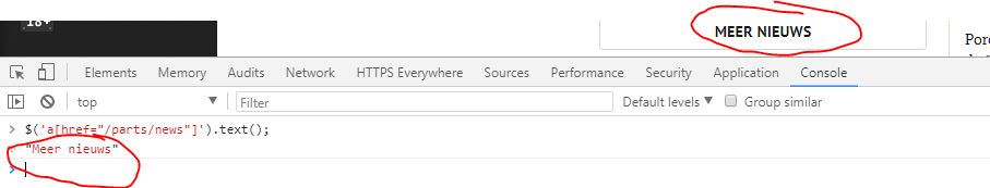我刚刚在一个俄罗斯网站lenta.ru上测试了它,并在翻译后运行$('a[href="/parts/news"]').text();
