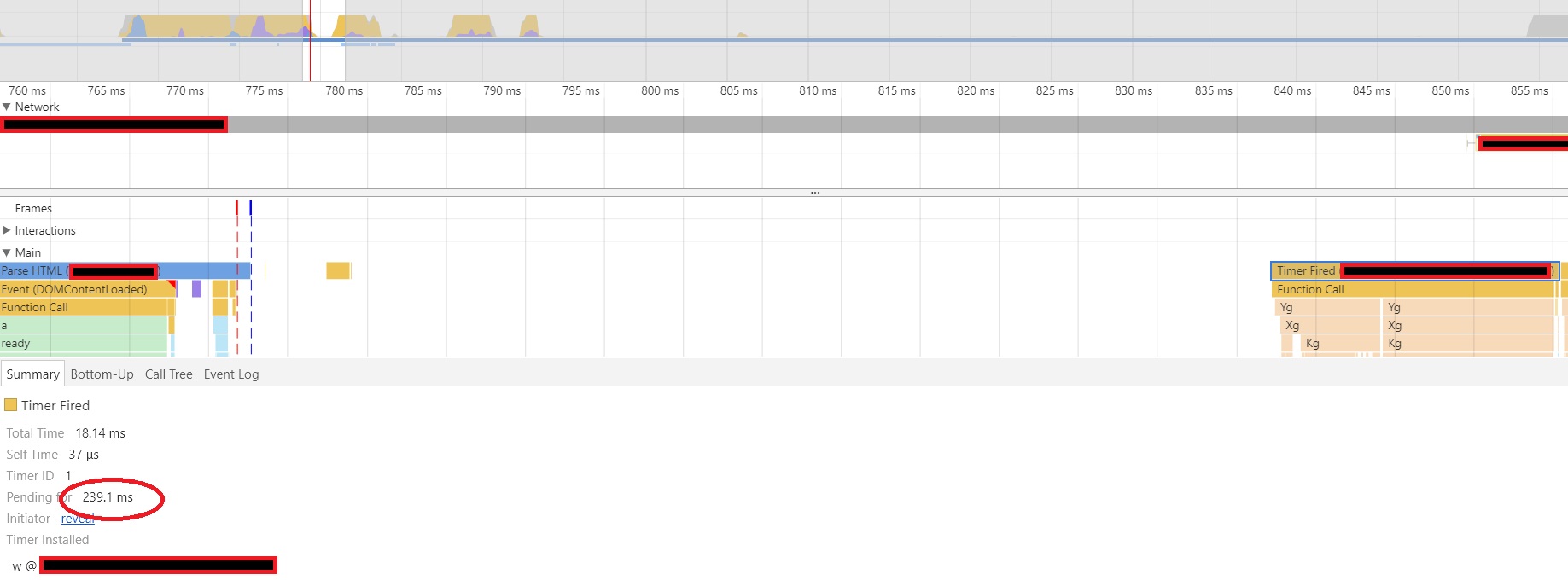 我正在使用Chrome工具分析现有UI应用程序的性能,并注意到了一种非常奇怪的行为--有时(大约5-10%)浏览器只是在从setTimeout()执行脚本之前空转。我搜索了很多,找到了很多答案,浏览器把脚本放到了队列的末尾,所以它等待直到所有其他任务完成。
