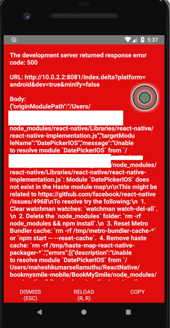 第二次我试图安装‘react本机-模式-覆盖’包,而不是使用npm安装,我使用了纱线添加反应-反应-本机-模式覆盖,