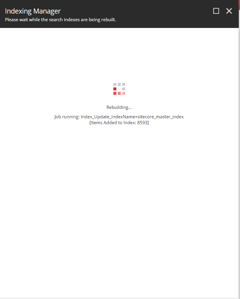 我正在研究一种在Azure上的PaaS解决方案。我提供了一个具有标准市场过程的Sitecore实例。刚安装完,我就进行了一次完整的索引重建。但是,当Sitecore开始重建主数据库索引时,在添加了随机数量的索引之后,它就会陷入困境。