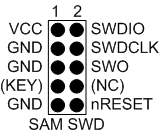 ( key )是一个物理密钥,以确保Cortex Debug连接器以正确的方向连接。与连接器上(键)对应的孔通常被填充,与头上(键)对应的引脚通常被切割。所以(关键)实际上是从董事会的角度看是不连接的。